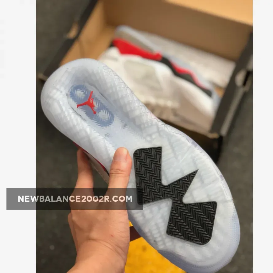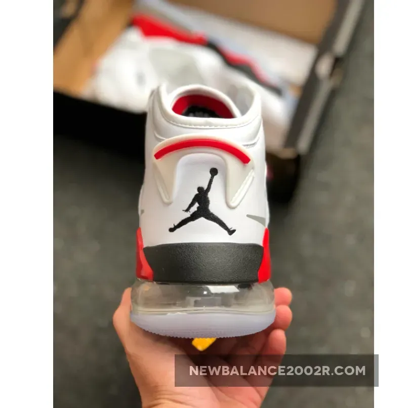 Paying homage to classic Air Jordan colorways, one of those will include an upcoming “Fire Red” iteration. This release features a White leather upper with a Silver Swoosh underneath the mesh netting on the sides. Black detailing, Fire Red accents atop an Air Max 270 heel unit and translucent outsole completes the design.