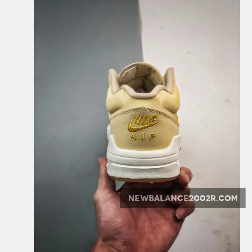 The sneaker celebrates simplicity and elegance, boasting a minimalist color palette that allows finer details to shine. The upper is crafted from a serene blend of beige and cream leather, creating a subtle yet luxurious aesthetic. This understated base is enlivened by golden suede Swooshes and tinted forefoot teeth that sweep across the sides, injecting a vibrancy reminiscent of sun rays.