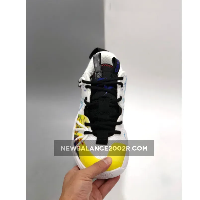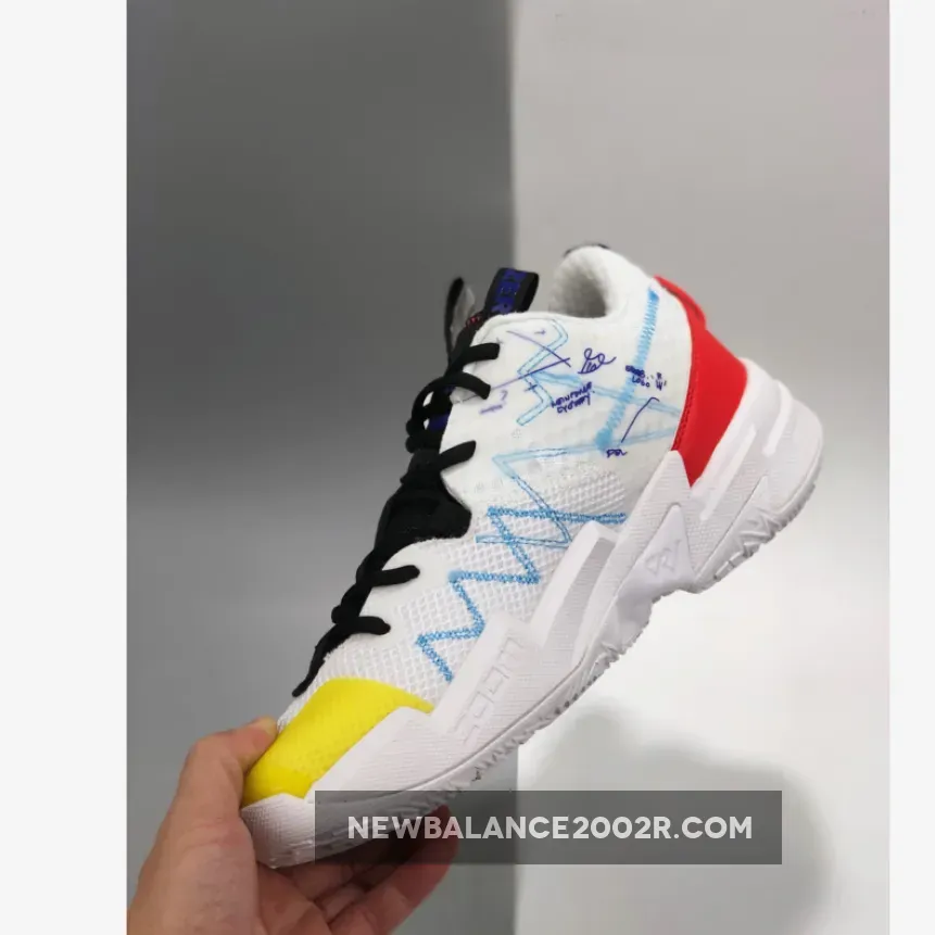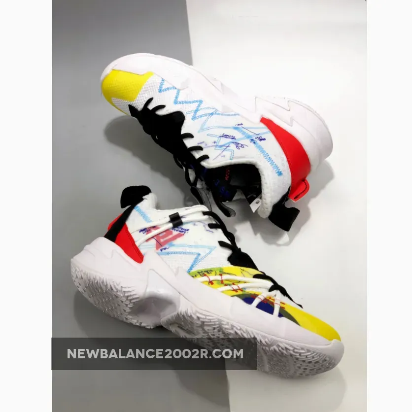 The raw, blueprint-like writing on the shoe draws from the Red lining made by footwear designers during the pattern trial process. Each color represents a professional team that Westbrook has played for.