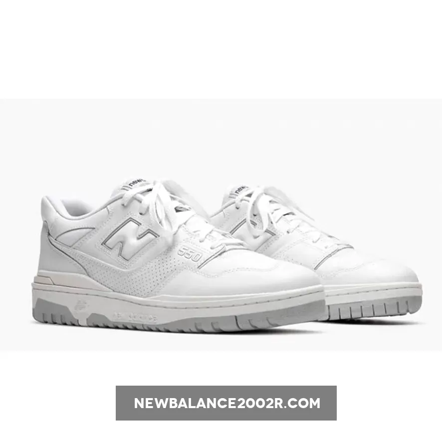 “The New Balance 550 ‘White Grey’ offers a clean colorway of the vintage hoops shoe retrieved from the brand’s late ‘80s archive. A monochromatic white finish is executed on the leather upper, featuring a tonal ‘N’ logo and perforated midfoot detailing. Breathable mesh construction on the collar and tongue provides a comfortable fit. The low-top is mounted on a durable rubber cupsole, with an EVA wedge for lightweight cushioning. Grey New Balance branding on the heel is matched by the rubber outsole.What could be better than a pair of white kicks during the summer season? While all your friends are flaunting mainstream footwear models that you’re tired of seeing, you can be turning heads on the streets if you rock the New Balance 550 White Grey colourway.Official images show these basketball-turned-lifestyle shoes flaunting a leather upper clad with perforations throughout to provide optimal airflow and a super lightweight feel.All panels are predominantly hued in a crisp white tinge, while all the counterparts opt for a supple grey shade, complimenting the colour balance beautifully. New Balance branding graces the sidewalls in the form of an italicised N logo, and additional branding flairs mark the tongue, insoles, and heels alike for a touch of originality.If you’re looking to cop the New Balance 550 White Grey, make sure you use our New Balance 550 size guide so you know how they fit.