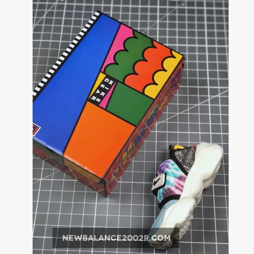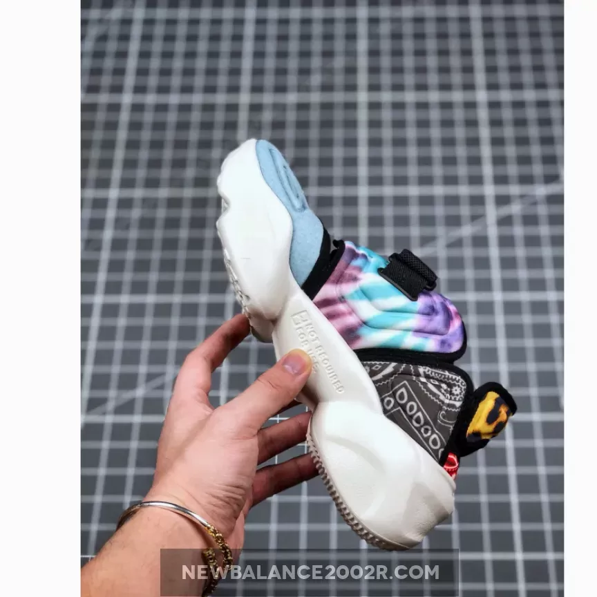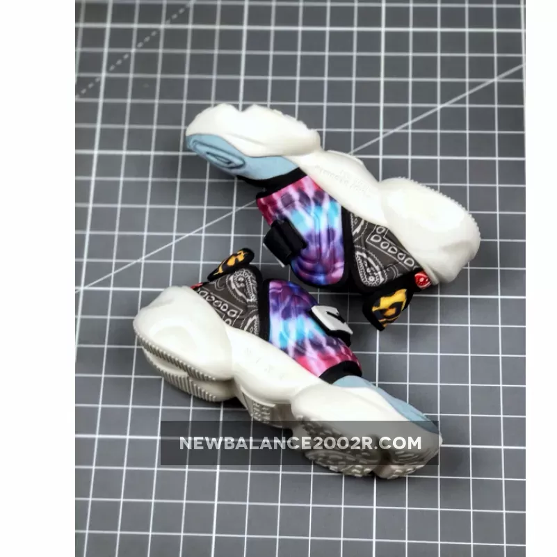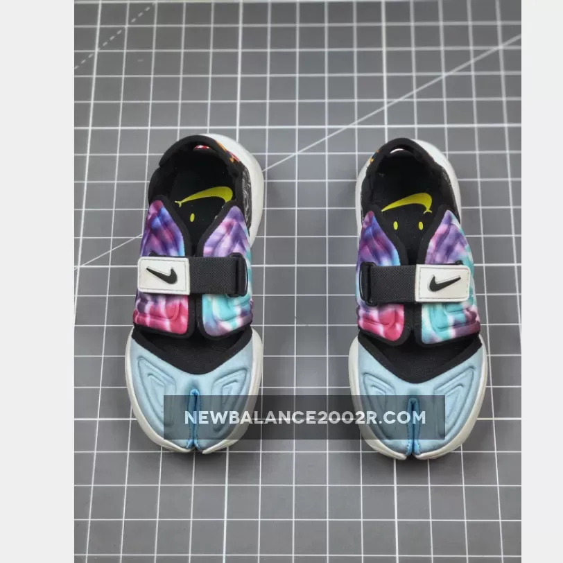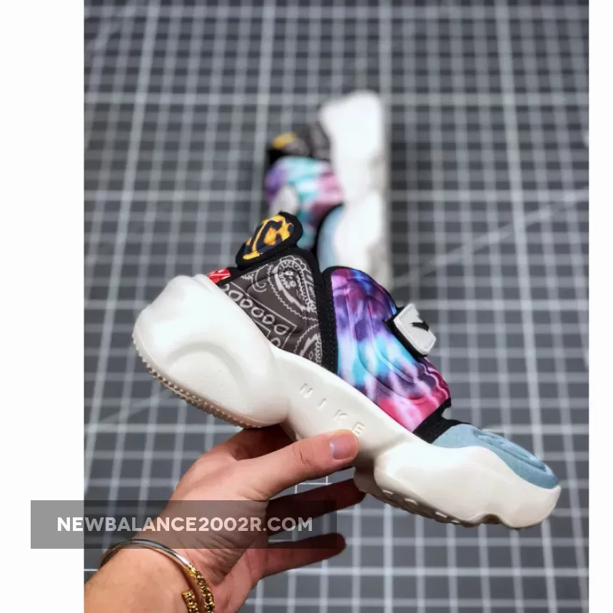 This offering of the Nike Aqua Rift sports Light Blue covering the toes, while the rest of the shoe is done in a mix of tie-dye, paisley, and animal prints. A Volt smiley logo face is printed on the insoles completed with a Sail rubber sole.