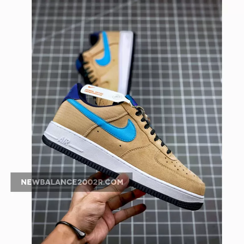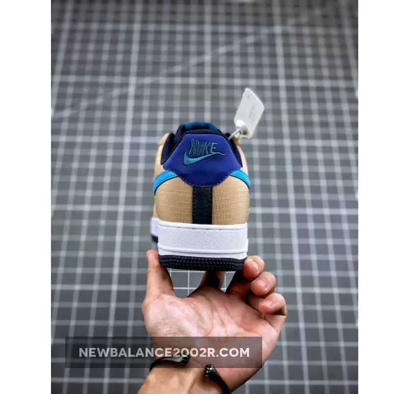 . The Air Force 1, fittingly, comprises a strong majority of this collection as its third entry plays off the cream bases of one of its debuting few. These neutral shades seat much of the upper in either suede or ripstop synthetic, leaving the Swoosh and adjacent branding to infuse color with a mix of cool tones: “Blue Fury” dyes the check, dark purples hit the heel tab, and darkened teals thread the warped “Nike Air” embroidery