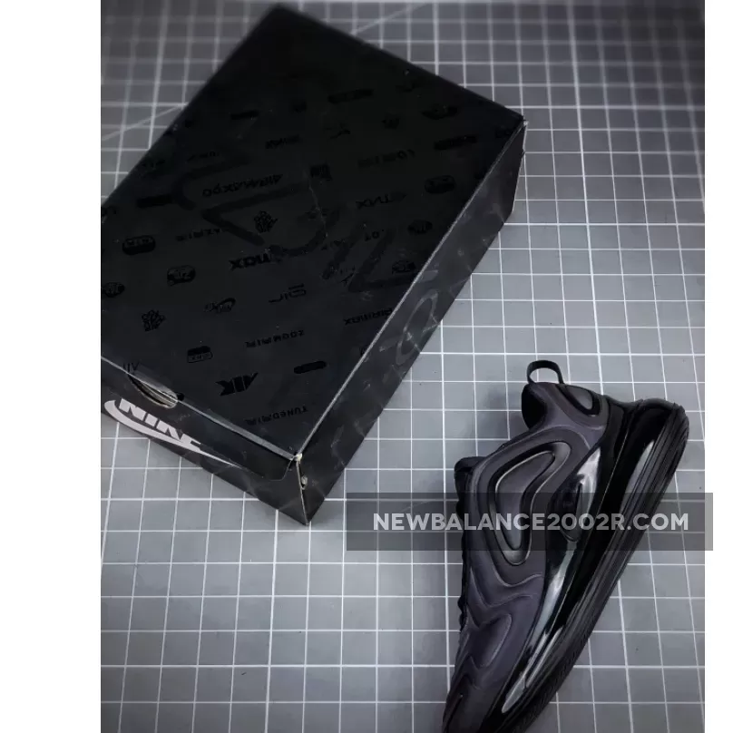 This iteration of the Nike Air Max 720 features an all-Black upper with matching Black plastic molded overlays. Finishing off the simple, yet sleek design is an all-Black 720 Max Air unit and outsole.