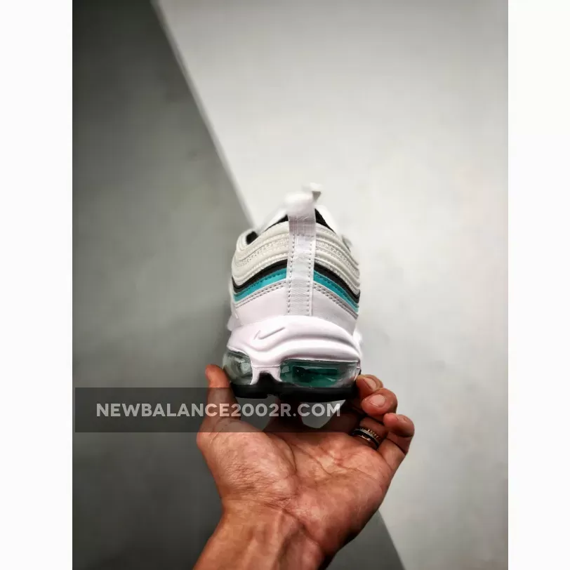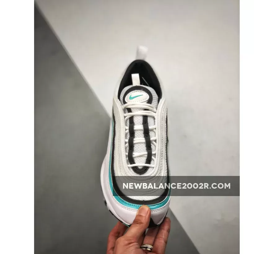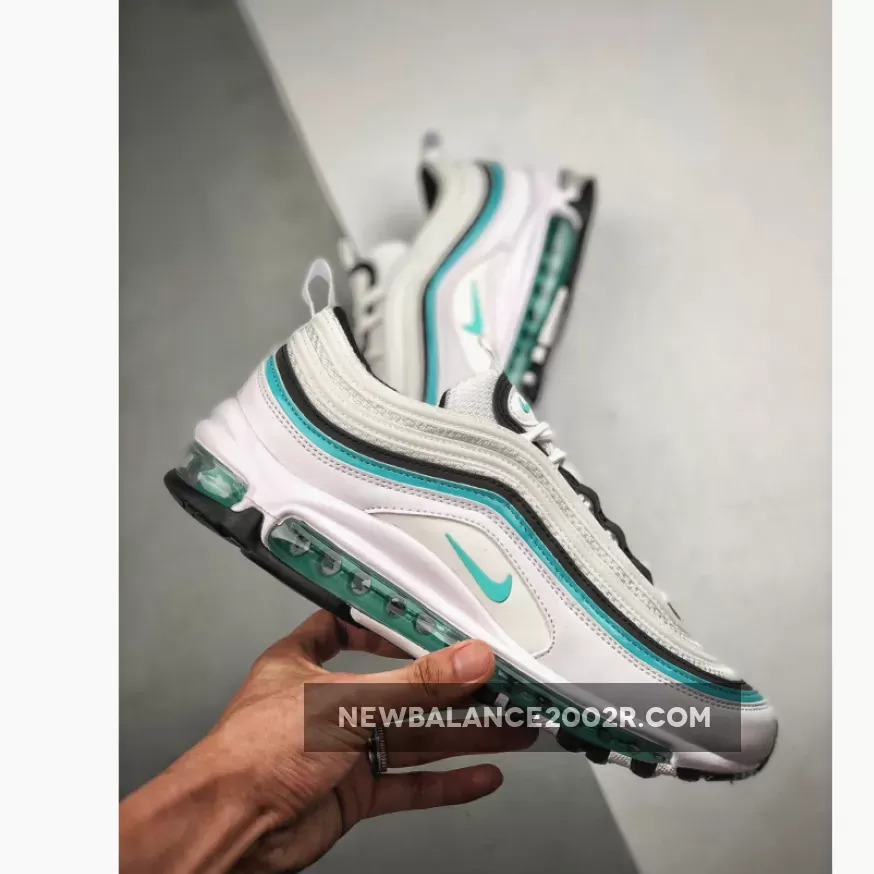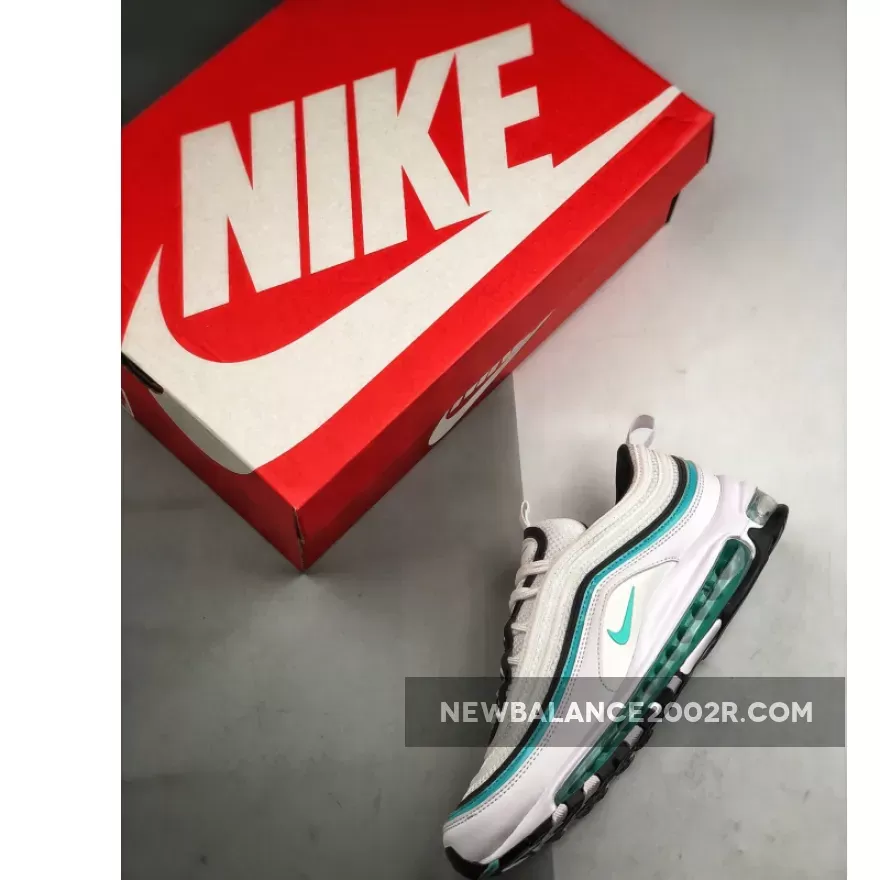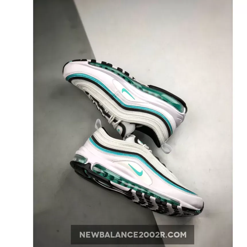 Looking closer this Nike Air Max 97 comes highlighted with White mesh across the upper while the same shade covers the leather mudguard. Both Black and Aurora Green leather lands on the overlays as well as some of the smaller details while 3M Reflective completes the look.
