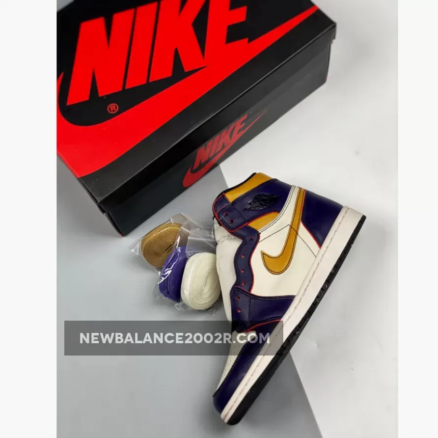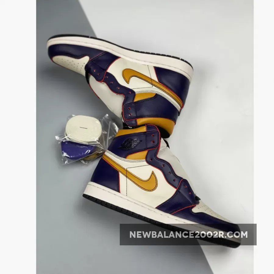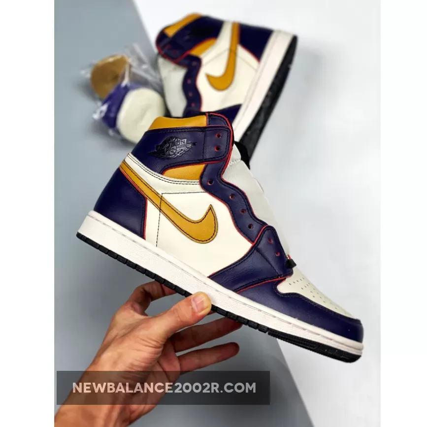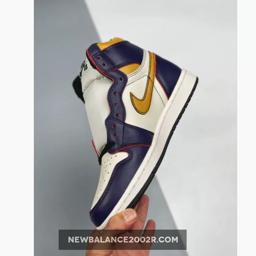 The iconic Air Jordan 1 silhouette was a skate staple in the 80s due to its full-leather construction and tough midsole/outsole combination. Working together again with Nike SB, the Air Jordan 1 returns in this ‘Lakers vs. Bulls’ edition that launched in May 2019. This colorway pays homage to the legendary matchup through a Court Purple and University Gold scheme on the leather upper that wears away to reveal red and black alternate hues. Lateral Swooshes, a Wings logo and nylon tongue fall in line with the original look.