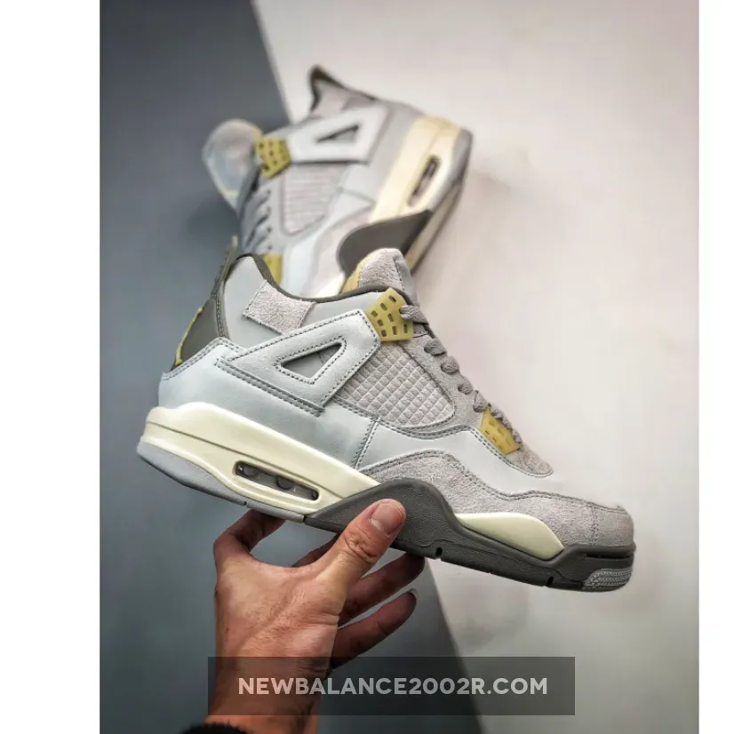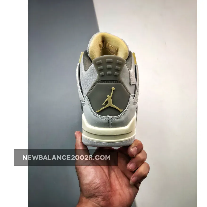 The Air Jordan 4 Retro SE ‘Craft’ makes over Tinker Hatfield’s original 1989 design with upgraded materials. The legacy silhouette sports a light grey leather upper with tonal suede construction on the collar and forefoot overlay. Support wings are built with cracked leather, while gridded suede replaces traditional plastic netting on the quarter panel. Pale Vanilla accents settle on the shoe’s molded eyelets, as well as Jumpman branding hits at the tongue and heel. Lightweight cushioning is provided an off-white polyurethane midsole, featuring a visible Air-sole unit nestled in the heel.