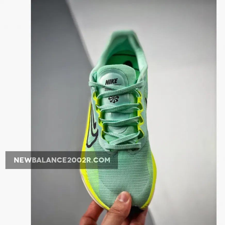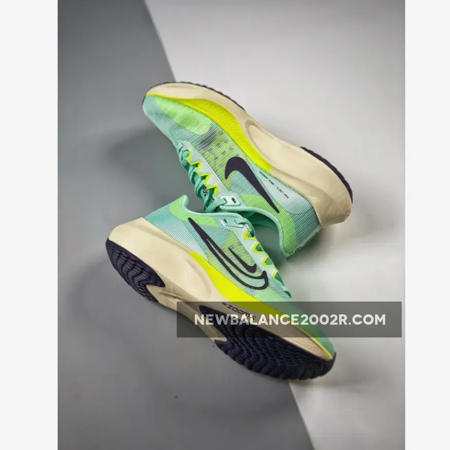 the Zoom Fly series served as the North American sportswear giant’s top-of-the-line race day shoe. Thanks to insight from and performances by Eliud Kipchoge, the VaporFly and AlphaFly NEXT% are currently the company’s premier options. Yet, the Zoom Fly 5, which is yet to debut, promises and delivers a different feel from those ultra-lightweight, propulsion-focused styles. Technical specifications for the upcoming shoe haven’t been disclosed by the company just yet, but a first glance at the sneaker’s two launch colorways reveal a more plump ZoomX sole unit and robust mesh upper. It’s very likely that the fifth iteration of the Zoom Fly silhouette also features a carbon fiber spring plate given it’s marketability as a race day shoe. Instead of encroaching on the VaaporFly and AlphaFly’s marathon territories, however, the Zoom Fly 5 may be better suited for shorter distances and speed work. “Push Limits – Break Barriers” is printed on the model’s medial side, which references its intended purpose.