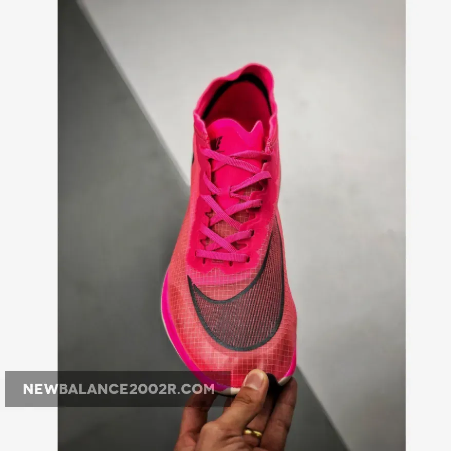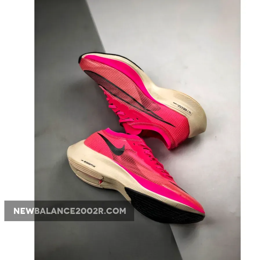 With more cushioning underfoot and reduced weight up top, the result is unprecedented energy return and comfort. Nike ZoomX foam delivers Nike Running’s greatest energy return yet, and Next% adds more ZoomX for responsive comfort on race day. This upcoming offering sports a Pink translucent upper paired with Black detailing on the branding areas atop a White ZoomX sole.