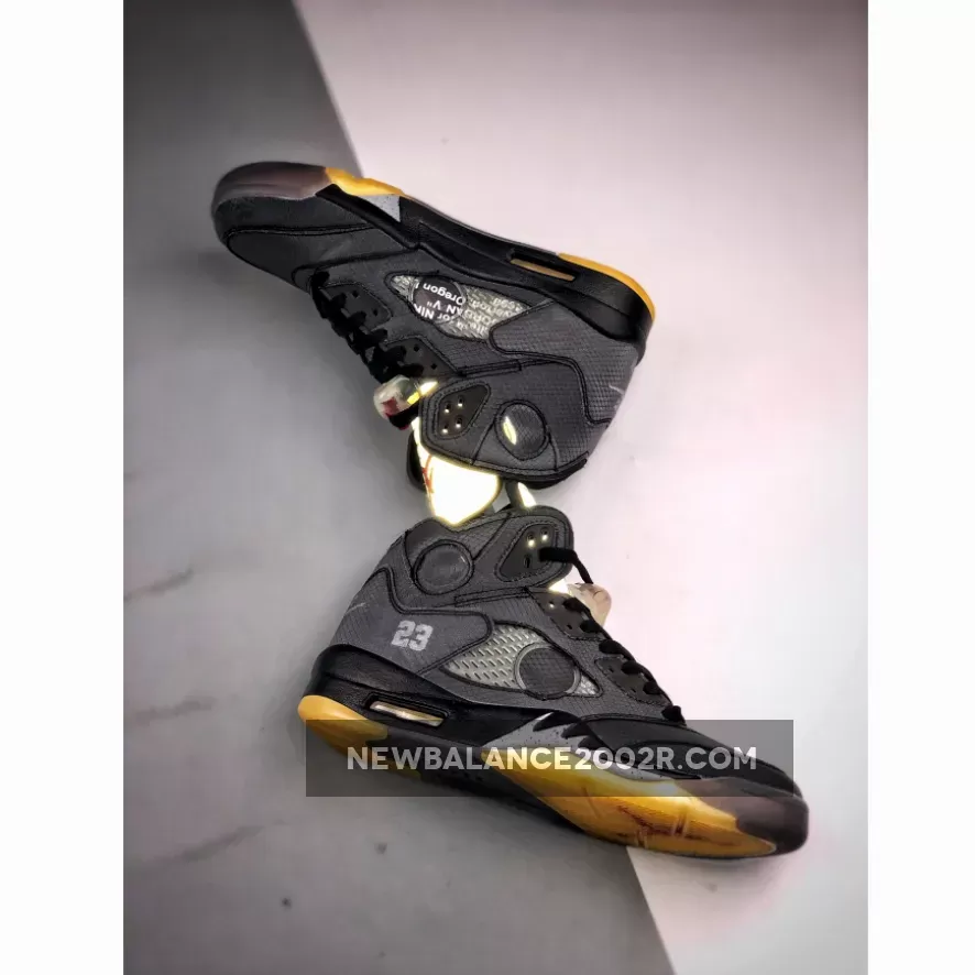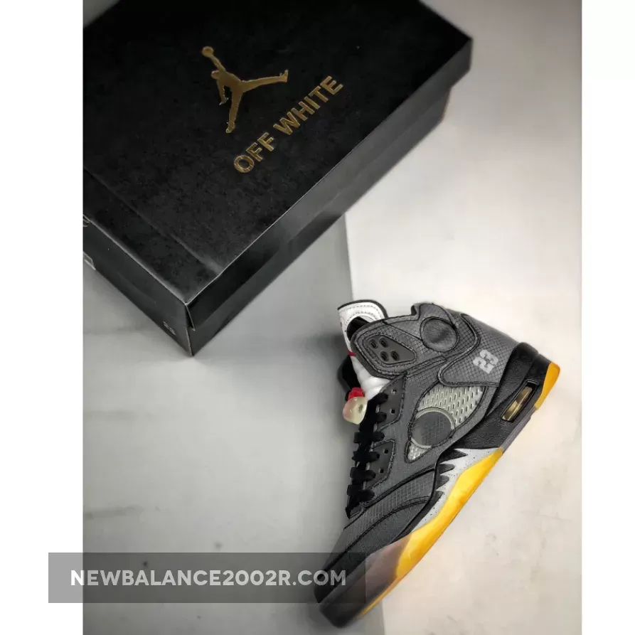 The new Off-White x Jordan 5 Black celebrates the AJ5’s thirtieth anniversary, and creative director Virgil Abloh has made sure it’s pure fire. A shoe that first leaked at around autumn of last year, not much is known about the Off White x Air Jordan collaboration, but what is 100% is the fact that these are going to sell out when they drop in the not-so-distant future.Bringing his love of deconstruction to the legendary basketball silo, Abloh’s latest Nike sneaker is painted in a “Black Metallic” colour scheme and replaces the usual leather construction with semi transparent panels. The Off-White Designer’s signature quoted text appears on the laces, while technical verbiage makes a comeback along the medial side.One thing that got every sneakerhead talking when these Jordan 5s first leaked was the Air midsole. As an homage to the storied legacy that it’s brought to the world, this Off White Air Jordan 5 opts for a pre-worn unit that gives off vintage vibes. While this may not be for everyone, it really adds to the overall look of the shoe.According to rumours, the Off White x Jordan 5 Black could be hitting shelves some time in February 2020 to coincide with All Star Weekend. This has yet to be officially confirmed, so make sure you keep it locked and we’ll let you know as soon as more release info rolls in.