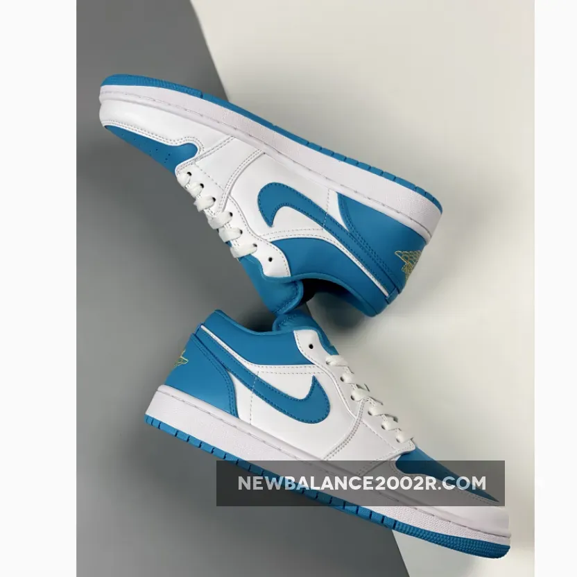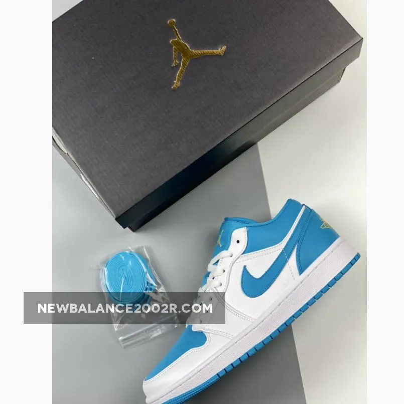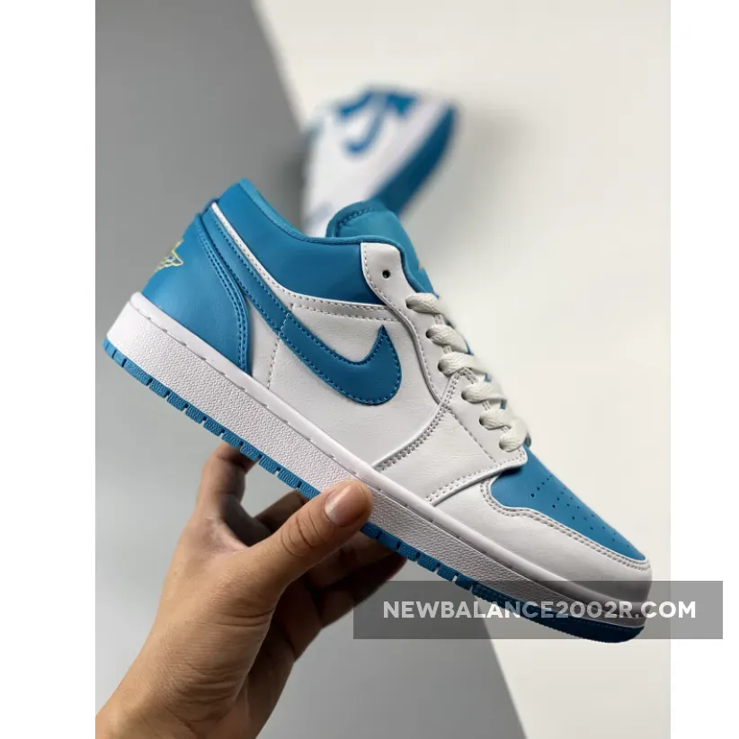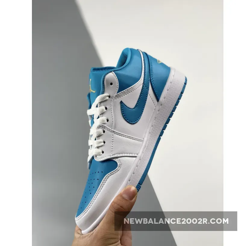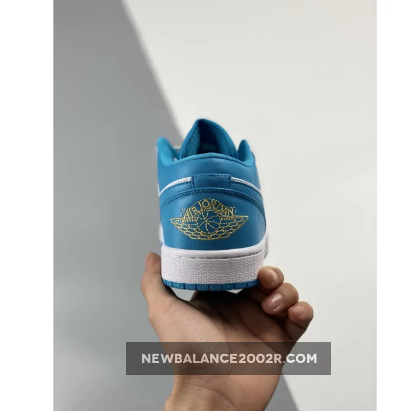 Just like the majority of Air Jordan 1 Lows, the upper seeks a majority leather construction from the toe to the heel. The toebox, heel, ankle collar, and signature Nike Swoosh are all dressed in “Aquatone.” Furthering its colorless impact across the midfoot and quarter overlays, the back half of the pair indulges almost exclusively in teal through its Swoosh, upper collar and heel counter while the lofty explorations of the established two hues pair together amidst its white midsole and blue tread underfoot. The back of the heel is embroidered with “Celestial Gold” Air Jordan Wings. While bright orange embroidery would match to a T.The outsole is also painted in teal blue and makes its way onto the star count on the toe portion of the sole.