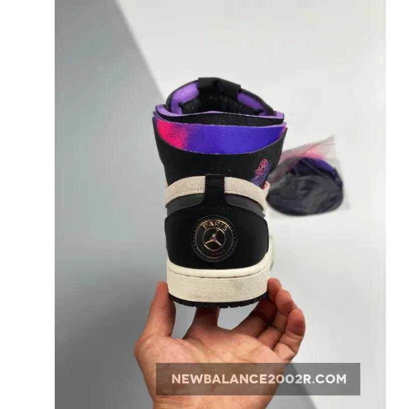 Dressed in a White, Psychic Purple, Hyper Pink, and Black color scheme. This Air Jordan 1 features a White leather upper with Black suede overlays. Highlighting the shoe is its gradients found around the collar and Wings motif to match PSG’s jersey while having reflective iridescent cut-in Swooshes on the sides. A White midsole atop a Black rubber outsole with PSG heel badges on the heels completes the design.