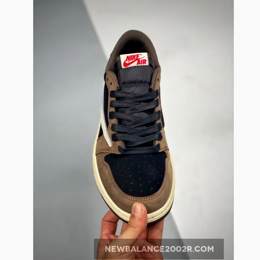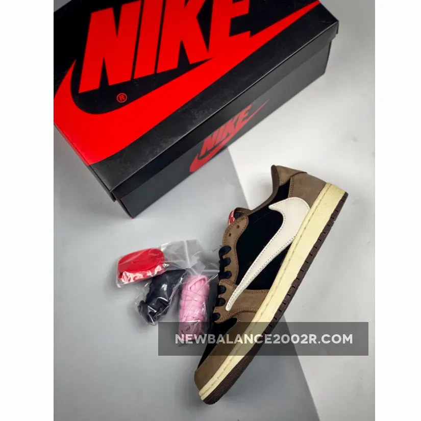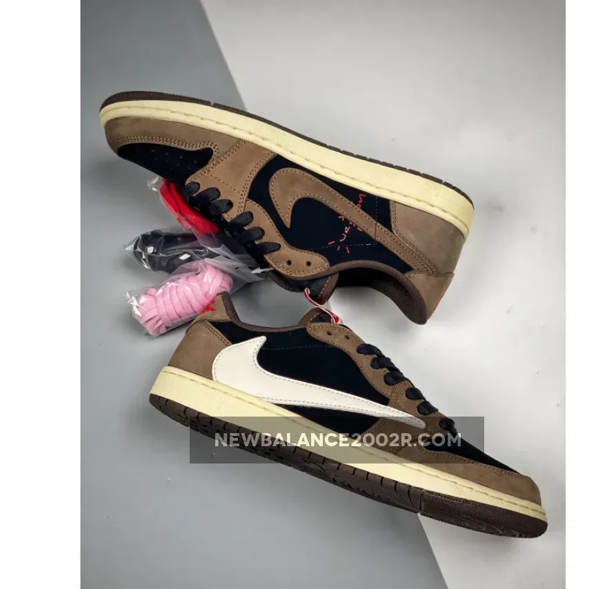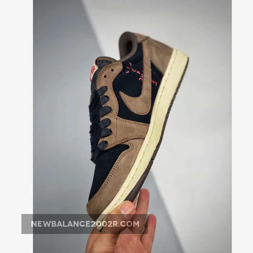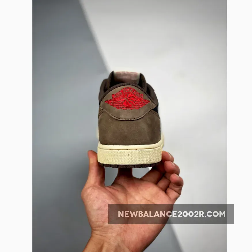 Designed as a low-top rendition of the aforementioned AJ 1 High, it sports an inverted color scheme of Black, Dark Mocha, University Red, and Sail instead. Black underlays with dark brown nubuck overlays comprise the upper, while the model is Much like his other Jordan 1, La Flame added his signature backwards Swoosh logo on the lateral side., followed by red accents throughout via Cactus Jack branding and the wings logo on the heel tabs.