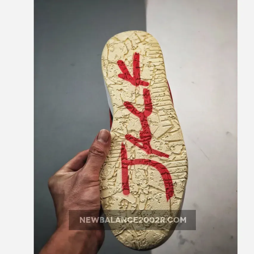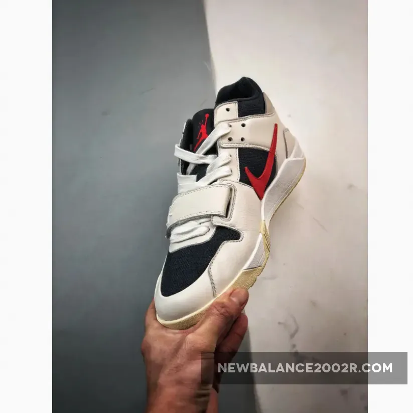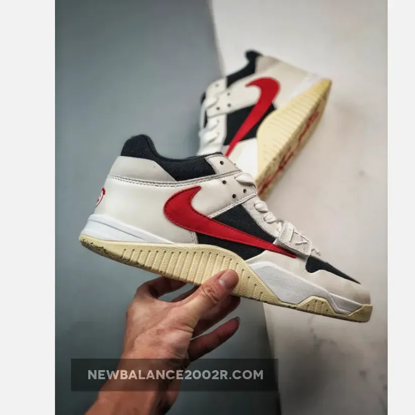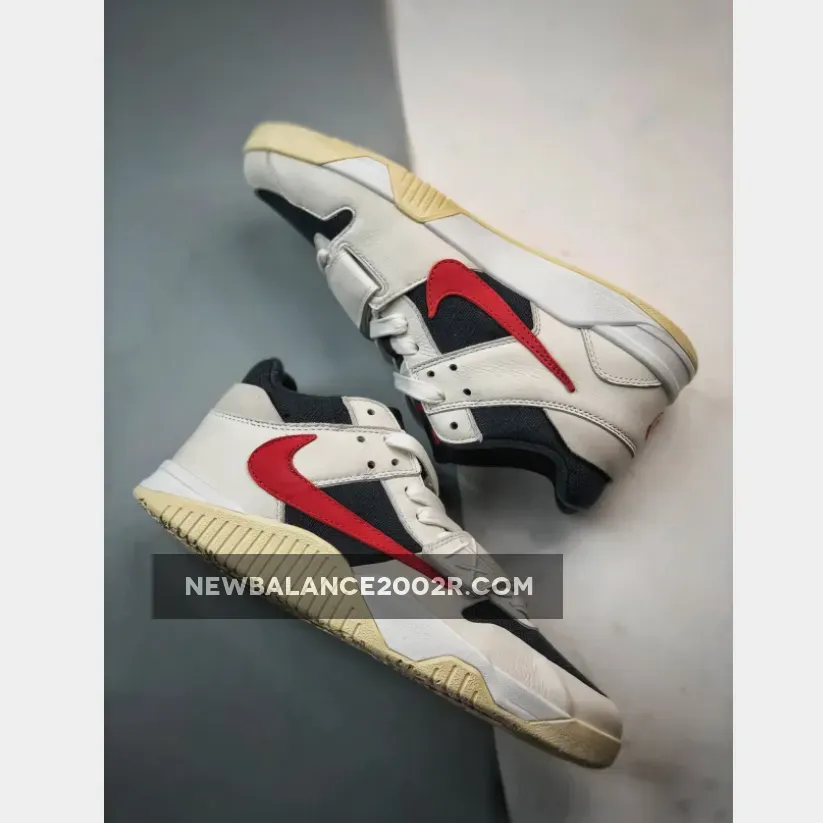 This pair has just been unveiled, sporting “University Red” at its Swooshes, the tongue’s Jumpman logo and the embroidered Cactus Jack face logo at the heel. Similar to the aforementioned “Sail” pair, a textile base is joined by leather overlays with this colorway utilizing black and white at the two areas respectively. Its signature midfoot strap is also featured in white leather while the sole unit pairs a white midsole with an off-white outsole.