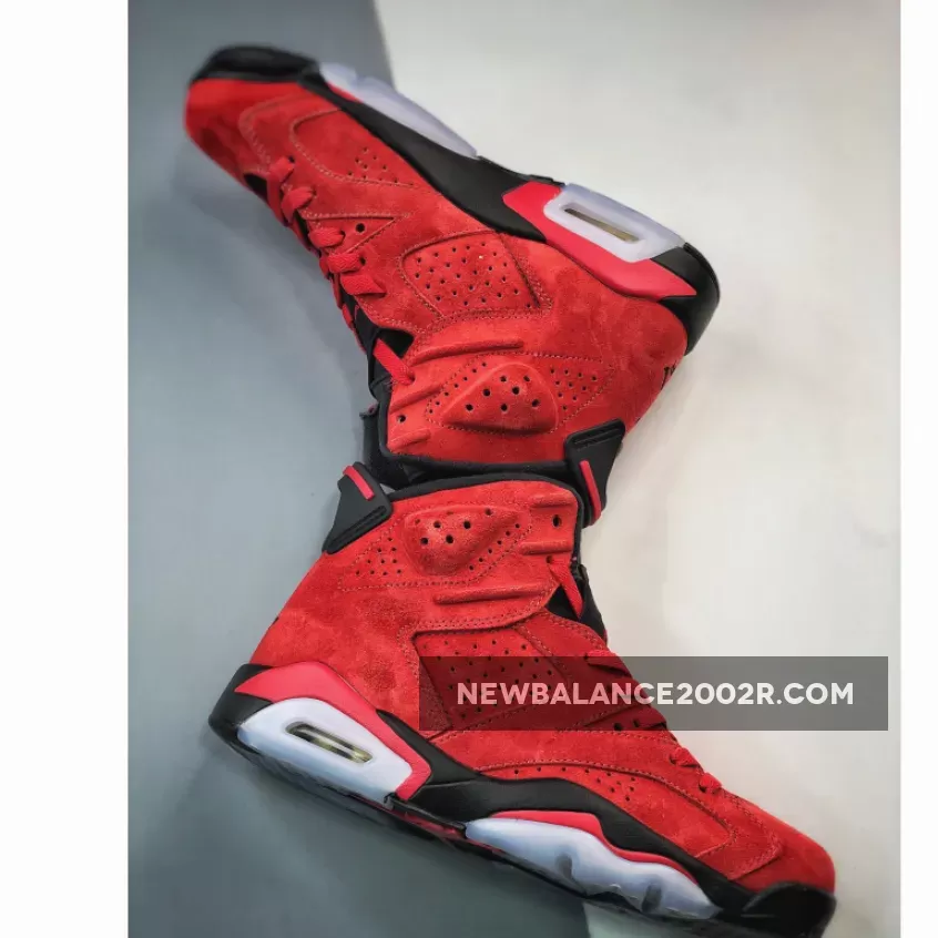 Keeping things simple, this Air Jordan 6 comes dressed in a Varsity Red and Black color combination. This pair will come with Red suede across the upper while Black adorns the tongue, heel tab, liner, and hinted on the midsole. Finishing the look is an icy translucent outsole.