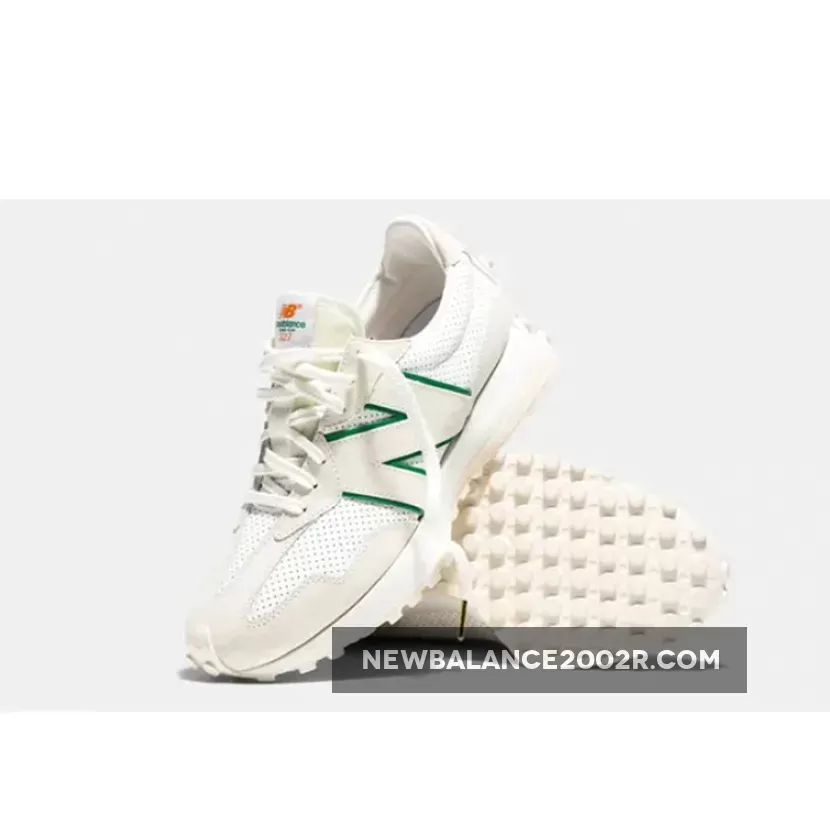 New Balance is back again in collaboration with the Moroccan heritage menswear brand Casablanca to release the Casablanca x New Balance 327 Grey Green. This is not the first time both brands have collaborated on the silhouette, their limited edition orange and green colorway that initially released early this year has risen in demand and people are eager to secure a pair on this forthcoming collaboration.The athletic sneakers will arrive in cream premium suede overlays, quarter panels crafted with white perforated leather and forest green accents outlining the logo on its lateral sides. The toe box is partially divided with white leather similarly to its side panels that differentiates it as a new style to other models. Completing this shoe is New Balance’s distinctive logo embroidered on the heels in the same green shade, an enlarged orange NB logo imprinted on the insoles, and a signature tag stitched on the tongue for its final touch.