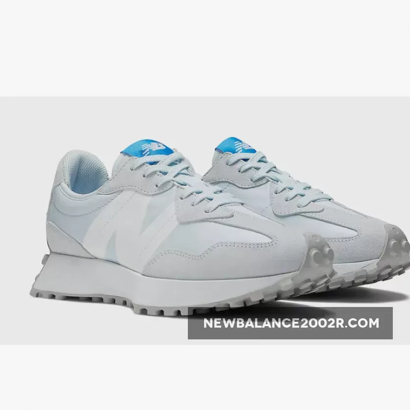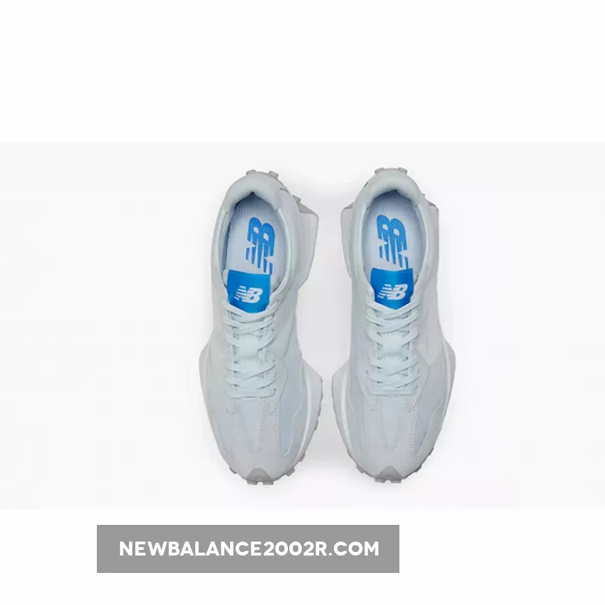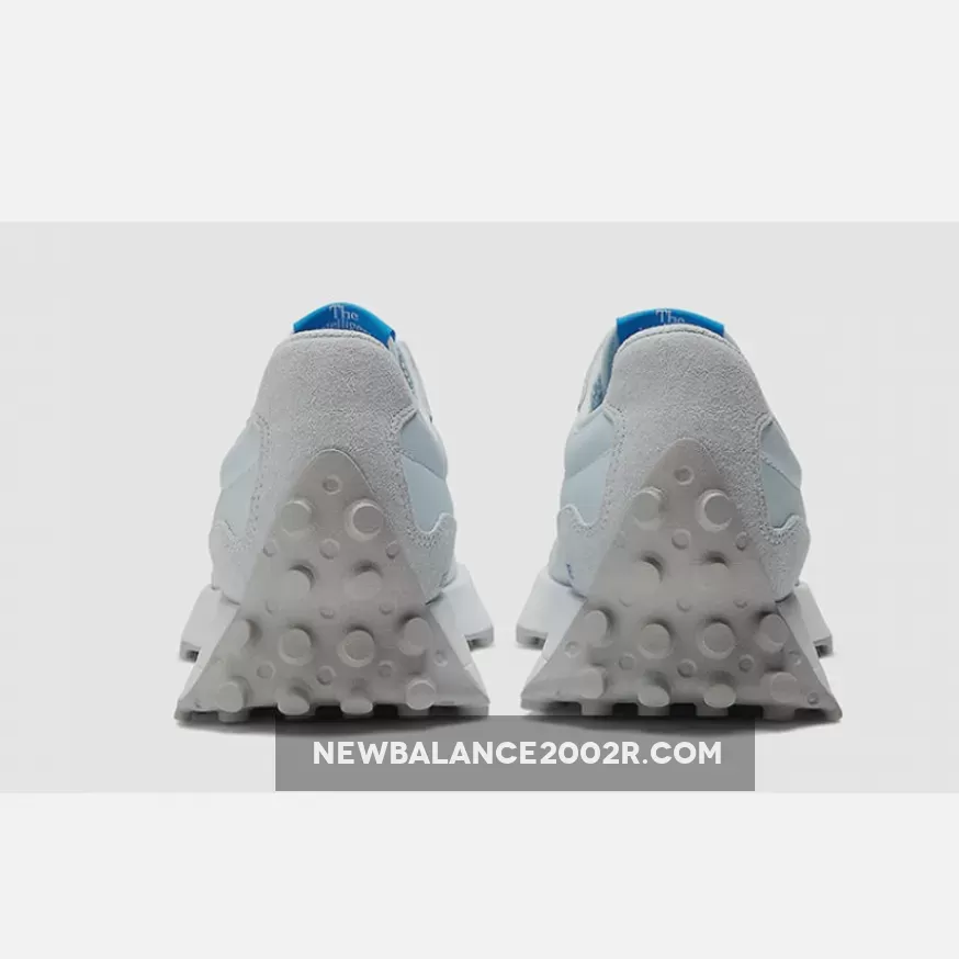 The Charlotte Lee-designed New Balance 327 has just released a cool-toned and neutral colourway. Introducing the New Balance 327 Blue Sea Smoke. The first things that will catch your eye on this NB 327 are the royal Blue tongue tabs with white NB branding. This same blue appears on the NB text branding on the medial side of the shoe. The textile base on the upper is a minty Sea Smoke that contrasts with the extra-large white “N” logos on the lateral side of the shoe. The luxe suede overlays of the shoes are also in matching Sea Smoke.
