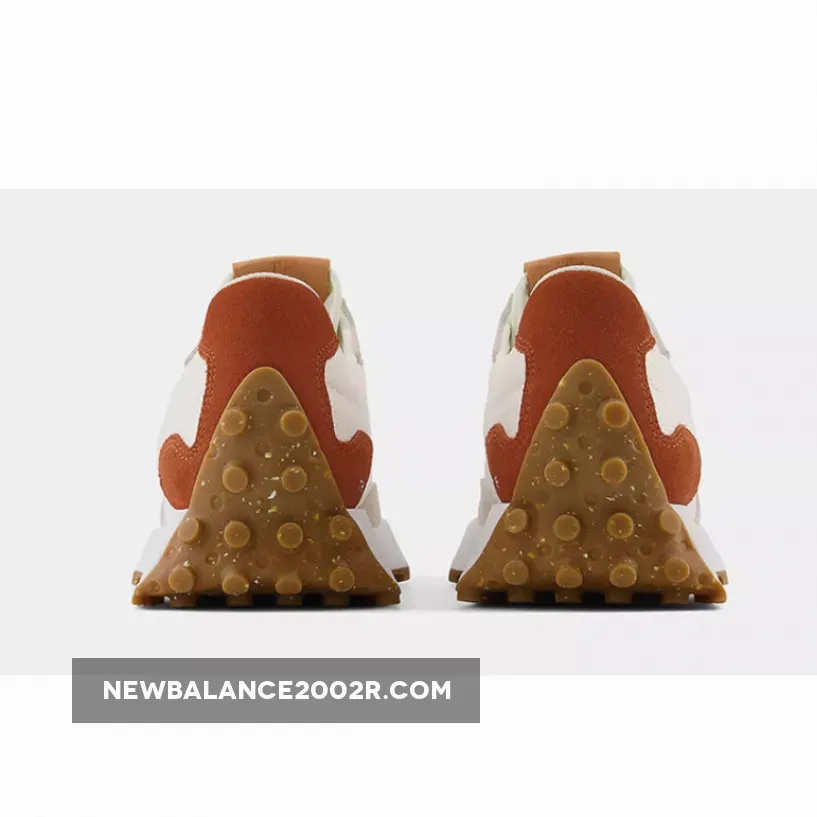 The New Balance 327 has a brand new iteration with striking colour blocking and meets the brand’s sustainability standard. Check out the New Balance 327 Sea Salt Rust Oxide. The nylon base of the upper is in the titular beige-looking Sea Salt shade. The suede overlays on the toe cap, the split eyerow on the forefoot and the eyestay panel are all in a darker tan colour. The heel overlay is the most striking detail of this shoe in a vivid reddish-brown Rust Oxide. An oversized “N” logo in white can be found on the lateral side of the shoe while New Balance text branding in white stands out on the Rust Oxide-covered medial heel counter.
