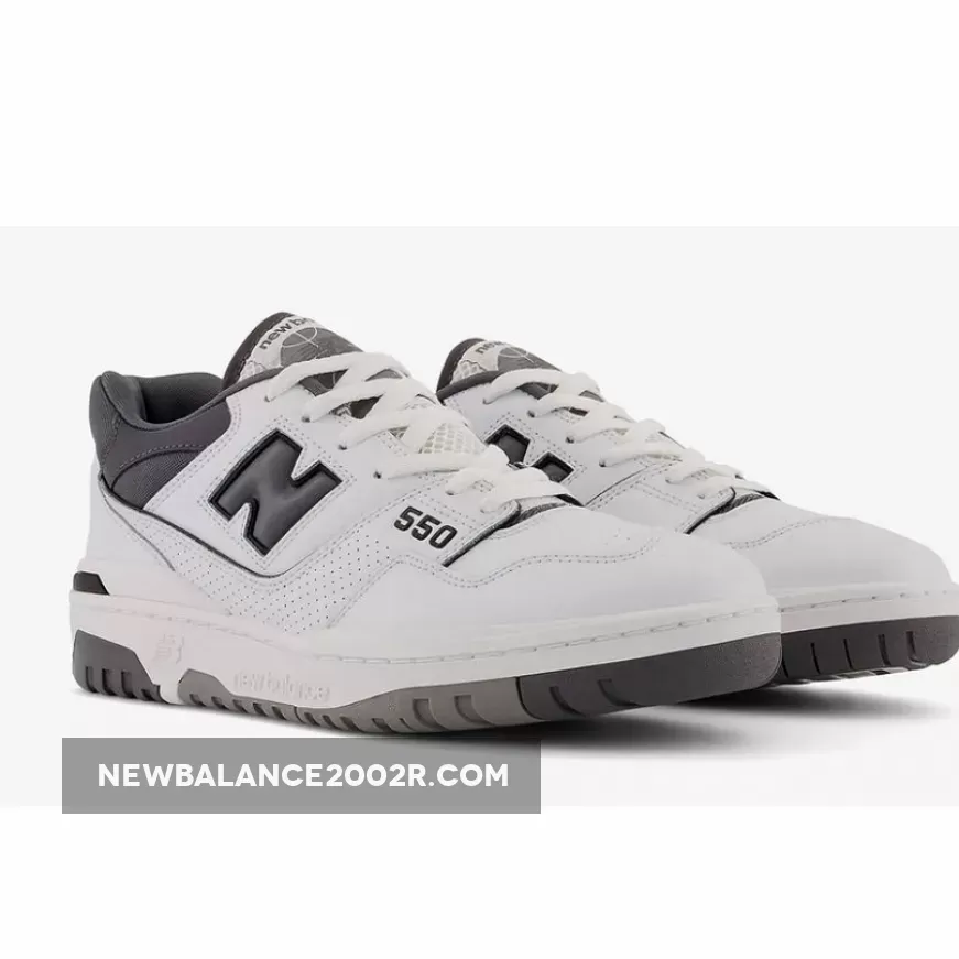 “The New Balance 550 ‘White Castlerock’ dresses the vintage ‘80s hoops shoe in a neutral two-tone palette. The low-top utilizes a layered white leather upper, contrasted by dark grey accents on the padded collar and signature ‘N’ logo. Additional branding elements include a Flying NB graphic on the heel and an oversized New Balance tag atop the open-mesh tongue.Embodying the vintage allure of a monochromatic palette, the New Balance 550 White Grey Black lends instant chicness to its wearer. The upper is dressed in elegant smokey white leather that’s further enhanced by intermingling black and grey accents. The iconic 550 “N” branding at the side panel also takes on a two-toned look, with charcoal grey filling the puffy symbol while stark black animates its outline.
