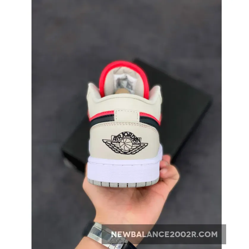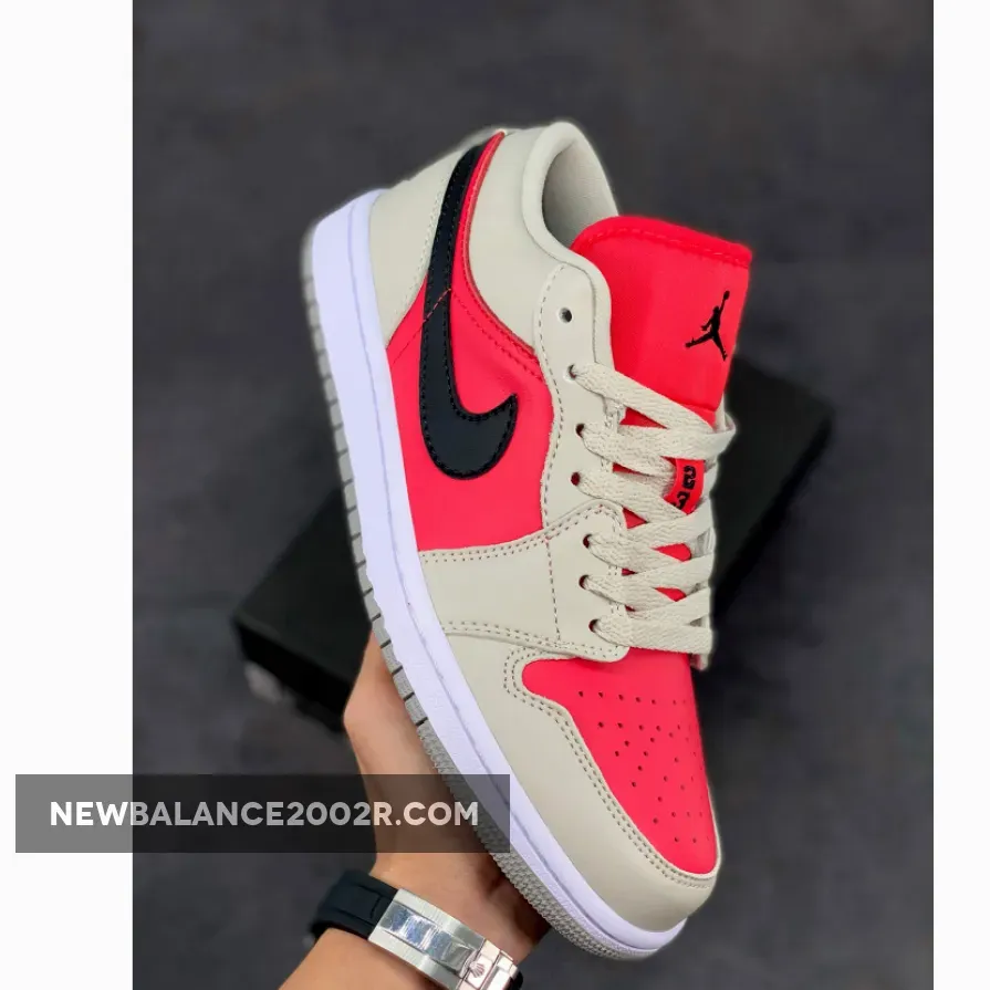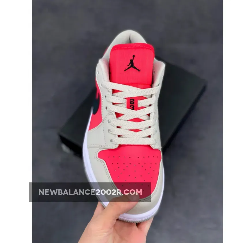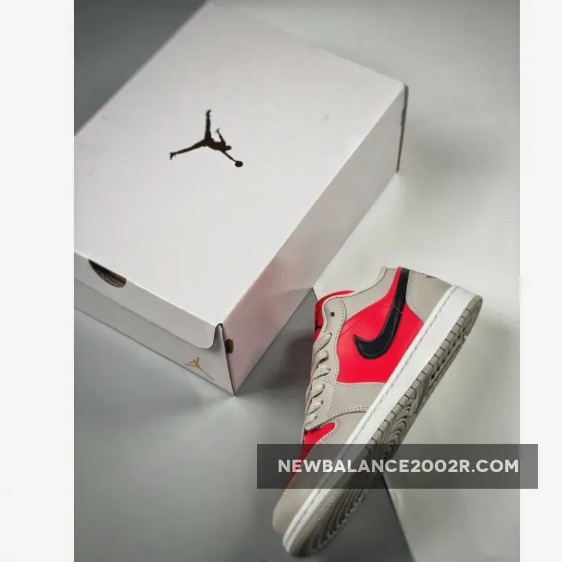 Dressed in a Light Iron Ore, Black, and Siren Red color scheme. This offering of the low-top Air Jordan 1 comes in a leather build featuring a Siren Red base with Black Swooshes and Light Iron Ore overlays. Black embroidered branding on the mesh tongues and heels atop a White midsole and Grey rubber outsole completes the design.